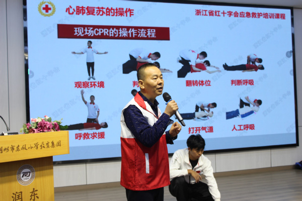 生命健康学院护理系教师易燕锋面向东风小学教育集团的孩子们开展了应急救护培训。