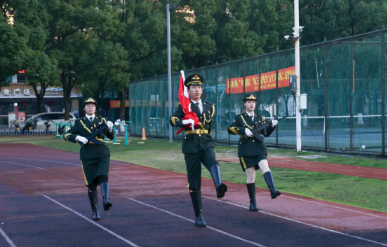 活动在国旗护卫队铿锵有力的步伐声中拉开序幕。护卫队成员们喊着响亮的口号,整齐划一地护送国旗入场。伴随着庄严的国歌声,鲜艳的五星红旗迎风飘扬,全体师生肃立注目,齐声高唱国歌,表达了对祖国的无限敬意。
