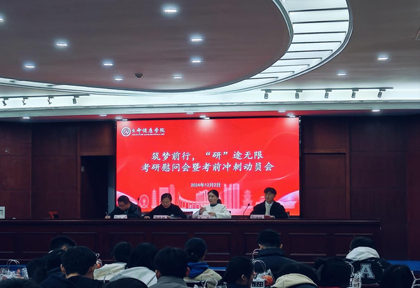 12月2日,生命健康学院召开考研慰问会暨考前冲刺动员会。学院领导、老师与即将奔赴考场的考研学子齐聚一堂,共同为这场即将到来的“大考”加油鼓劲、出谋划策。生命健康学院领导及全体辅导员,2025届毕业班班主任,全体考研学生出席本场活动。