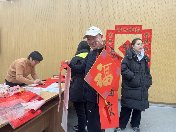 师生们手捧春联,笑逐颜开,百余副春联供不应求,很快就被争领一空。一副副寓意吉祥的春联和福字,不仅传递了美好的新春祝福,也将极具中国特色的传统文化进行传承推广,进一步丰富和满足了广大师生的精神文化生活,营造出欢乐祥和的节日氛围。