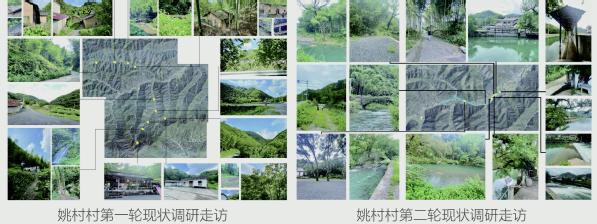 首轮调研覆盖姚村中心村、石壁村、从村及南车、北车多个自然村,考察了十个景观节点,并对村书记指出的五个关键节点(南车悬瀑、守林人房子、北车石片房与堤坝等)开展了设计头脑风暴。