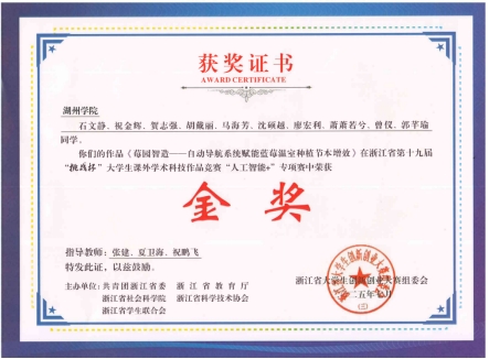 近日,浙江省第十九届“挑战杯”大学生课外学术科技作品竞赛“人工智能+”专项赛落下帷幕,永利官网项目《椒选新机-智能螺旋分选技术驱动青花椒产业升级》《莓园智造—自动导航系统赋能蓝莓种植节本增效》获金奖,取得了历史性新突破。