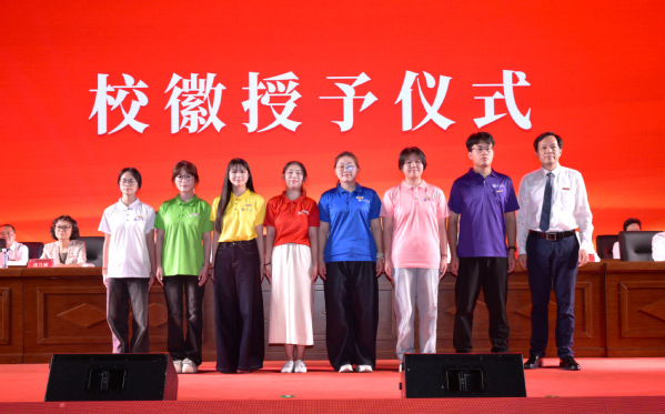 党委书记金波为新生代表颁发校徽,勉励他们坚定理想之舵、勇担时代之责、砥砺奋进之志,争做堪当民族复兴重任的时代新人。
