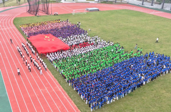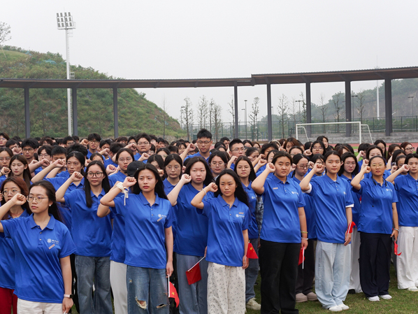 仪式最后,全体师生齐唱《我和我的祖国》,激昂的旋律、深情的歌声凝聚着对祖国的美好祝福。