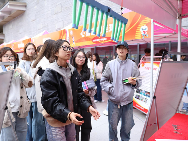 “智创未来·科技应用区”里,CTF社的“一问知校情”引发同学们热烈讨论,德宣社的“AI进化论——未来演说家挑战赛”让智慧的火花不断迸发;“文韵未来·数字人文区”中,湖学读书会的“AI为笔绘湖学”将传统与现代完美融合,剪绘人生社的“团聚湖院,贴满热爱”让创意在指尖绽放;“活力未来·运动健康区”欢声不断,护理健康协会的“AED校园寻踪”巧妙融合健康知识与趣味寻宝,排球社的“快到筐里来”引得阵阵喝彩;“艺趣未来·沉浸体验区”人气爆棚,美丽视界设计协会的“辨图答题·科技拼图”让同学们在游戏中熟悉校园,绎梦讲演社的“你演我猜”引发欢声笑语;“实践未来·公益模拟区”温暖有爱,习近平新时代中国特色社会主义思想研究会的“转盘领使命,解校园难题”让理论学习生动有趣;“探索未来·趣味科普区”妙趣横生,各个社团用创新打造未来知识,用兴趣融合科技游戏,展现着湖院青年的智慧与活力。