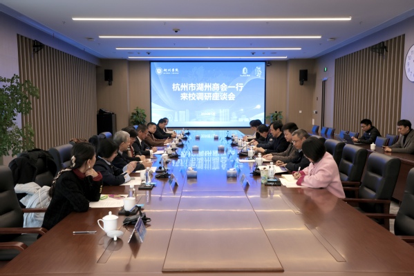 1月22日下午,杭州市湖州商会会长胡一平率商会企业家代表团一行莅临永利官网考察交流。校党委书记金波,党委委员、副校长李祖欣,杭州市湖州商会会长胡一平,副会长蒋建琪、陈找根、计闽军、张竹,执行秘书长邱国华,党支部书记陈强出席,相关职能部门负责人参加座谈。